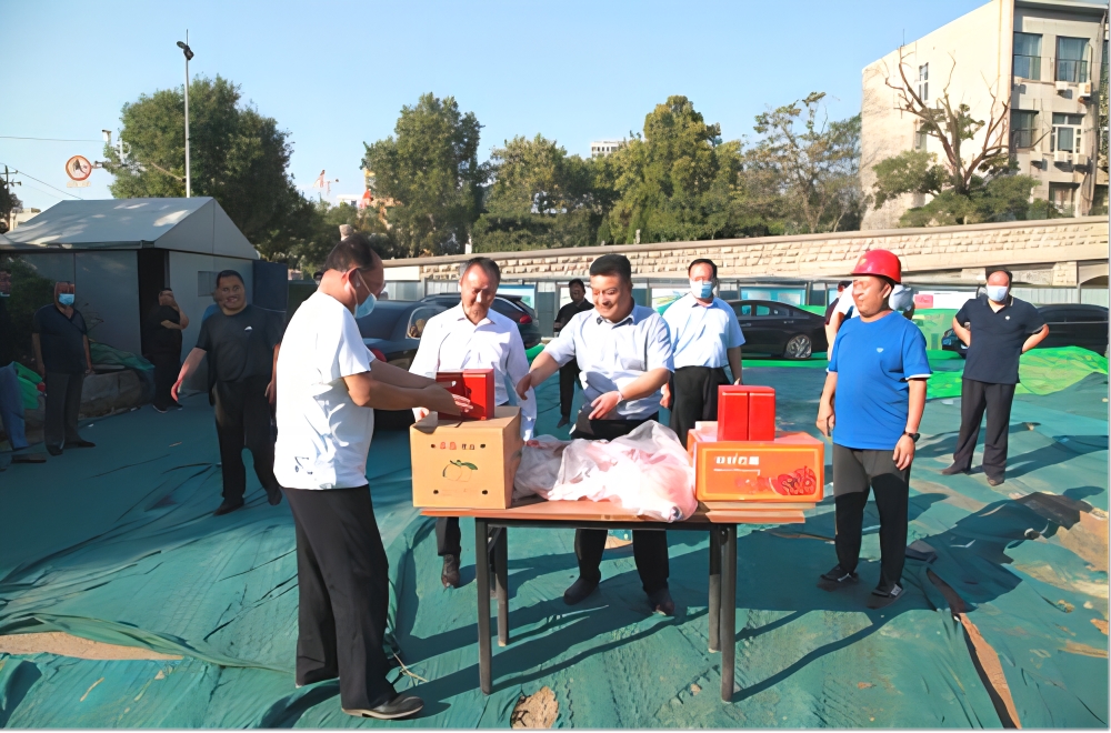 | 在国庆节即将到来之际,总公司党委书记马瑞山带领领导班子全体,走进正太广场、槐安路高架西延、太平河片区项目开展国庆节前慰问工作,为坚守在一线工作岗位的干部职工送去关怀和温暖。 在项目现场,慰问组一行详细查看了项目建设进度、安全文明施工、疫情防控、隐患排查治理、值班值守等工作情况,对每位干部职工辛勤履职的敬业精神给予充分肯定并表示衷心感谢。 |